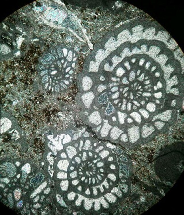 Qualora al microscopio stesse dunque osservando la superficie di un fossile, lo differenziereste abbastanza facilmente dalle altre tipologie di rocce di origine inorganica in quanto queste presenterebbero una distribuzione e una colorazione dei minerali atipica per un organismo, che invece ha delle morfologie ben definite (se ben conservato) dettate dalle parti dell'organismo vivente.