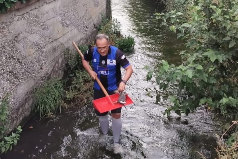 Non ha avuto un attimo di esitazione il sindaco di Caravaggio, Claudio Bolandrini, quando ha visto un gattino in difficoltà dentro un canale. La foto su Facebook lo riprende mentre, con calzettoni, sneakers e la divisa dell’Atalanta, squadra per la quale evidentemente batte il suo cuore, cammina nel corso d’acqua con in mano una vanga usata per salvare il piccolissimo micino.