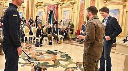 Il cane sminatore è stato premiato alla presenza del presidente canadese Trudeau, ospite di Zelensky. Non è la prima volta che Patron, un Jack Russell artificiere di due anni, finisce sotto i proiettori dei media. Anzi, il piccolo "pallottola" come si chiamerebbe in italiano, ha anche un suo profilo Instagram e le sue "missioni" sono rimbalzate, nei giorni scorsi, anche in Italia e in particolare sull'account di Roberto Saviano. «Un cane ha un olfatto centomila volte superiore a quello umano. È in grado di percepire odori molti metri sotto terra. La capacità di muovere le sacche nasali gli permette di intuire la direzione esatta dell’odore. Questo è Patron, il suo talento olfattivo è riconoscere esplosivi. E in Ucraina ha fatto scoprire centinaia di mine nascoste e missili inesplosi».