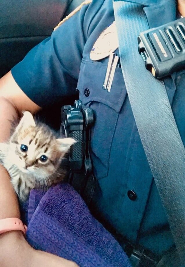 Durante la normale pattuglia in un quartiere, Rowsey e il suo collega hanno visto un piccolo gattino che era tutto solo, spaventato e in difficoltà sul ciglio della strada. Gli agenti hanno deciso di fermarsi, lasciando tutto per dare una mano al gattino.