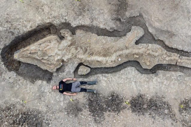 La scoperta nelle Midlands inglesi è merito del Leicestershire and Rutland Wildlife Trust e di Joe Davis, che ha scovato il fossile su un'isola lagunare nel bacino idrico di Rutland nel febbraio del 2021. Il "drago marino", come vengono spesso etichettati questi antichi e giganteschi rettili, è lungo circa 10 metri e solamente il cranio ha un peso di circa una tonnellata.