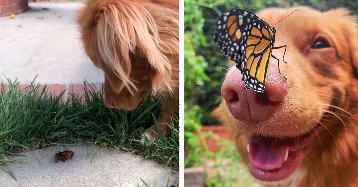 In realtà, Jen e Milo, un Nova Scotia duck tolling retriever, ormai conoscono davvero bene questi insetti e il cucciolone ha un rapporto così tanto amichevole con loro da essersi guadagnato il titolo di Re delle farfalle già nel 2019 quando centinaia di coloratissime monarche stavano migrando attraverso Los Angeles e Milo rimase completamente affascinato dallo spettacolo. Il cane permetteva loro di riposare sul suo tartufo, restando completamente immobile e socchiudendo dolcemente gli occhi al movimento delle loro zampette.